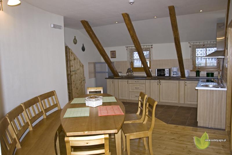 Kuchnia i aneks kuchenny są w pełni wyposażone w urządzenia AGD i naczynia kuchenne.